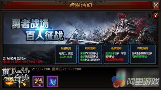 《全民奇迹MU》勇者战场中的玩家来自各个服务器,他们将在里面争夺全新的BOSS,除了击败其他玩家,斩杀BOSS会获得更加丰厚的积分。与其他BOSS不同,勇者战场BOSS的积分并非奖励给某个伤害最高的玩家,而是由所有对BOSS造成伤害的玩家按伤害量平分。