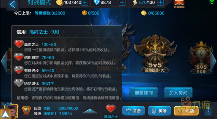 玩家的初始信用值为100,被系统判定挂机一次,扣10分;单局游戏没有被举报则信用值增加2点(1V1、人机对战除外),连续“犯案”顶风上还会有额外扣除加成。信用值的高低会影响玩家在PVP模式中的各种收益,如金币、竞技场币、对战经验等。根据信用值的高低,系统将召唤师划分为4个阶段,并赋予不同的称号。若信用值跌至60分以下,将不得参与排位赛;若信用值跌至39以下,则对战将会没有任何收益。 所以,请各位召唤师珍惜自己信用值哦!