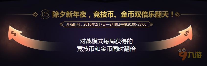 【竞技币、金币双倍】:在除夕新年夜玩对战模式,竞技币和金币收益双倍!