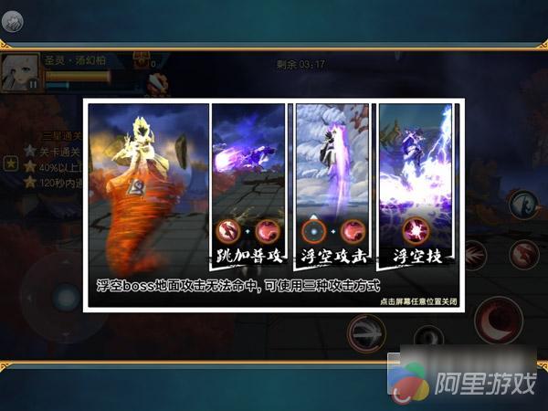 另一个是“虚拟摇杆向上+连续普攻”,在攻击过程中把敌人挑飞到半空,继而对敌人使出各种技能——这个组合技便于攻击过程中随时使用,如果只是持续普攻,同样是不耗蓝的。