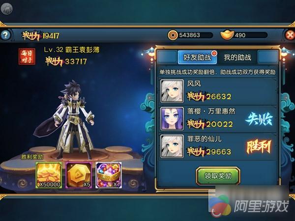 如每天一次的“每天挑战”。游戏会随机安排一位玩家,供你们挑战。由于随机安排的玩家等级一般较高,所以单凭一己之力不可能战胜的,这时就要邀请助战,每位玩家可邀请三位 25 级以上的好友助战。然后大家轮流挑战这位高等级玩家,只要团队里一个人挑战成功,那么自己和助战玩家就能获得奖励。玩法设计本身非常促进玩家互动,而且玩家还能根据 BOSS 的属性,挑选好友中可以克制他的职业,增加成功率。