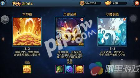 玩家可以点击已开启的灵兽宝藏关卡进行参与,通关后即可获得全民奖励。在奖励有含有大量强化石。已开启的宝藏如果胜利条件达成,则开启人会获得高额的开启奖励。开启寻宝需要消耗不同类型资源,如金币、元宝、驭兽符等。除了强化石,灵兽宝藏还能获得紫色装备和精炼石奖励等。