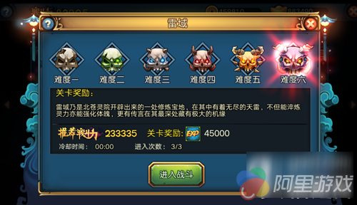 玩家限时消灭雷域内的怪物,可以获得大量的经验。雷域每天可以挑战3次,每次挑战后都有若干冷却时间。