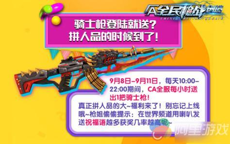 死亡骑士、恐惧骑士…众多骑士枪的高端造型,超强属性,使骑士枪在CA军械库中排在前几名的位置。《全民枪战2》两周年活动中,9月8日-9月11日,每天10:00-22:00期间,CA全服每小时送出1把骑士!真正拼人品的大~福利来了!千!万!别!忘!了!上!线!