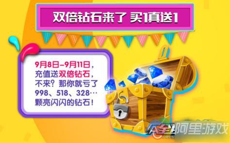 钻石作为《全民枪战2》的通用货币,坚挺的地位是无法动摇的。在之前的枪战活动中,充值钻石双倍一开启就会受到玩家的疯狂追捧。9月8日-9月11日,你们 期待的双倍钻石活动来了!只要充值998、518、328都会收到1比1的返钻福利!