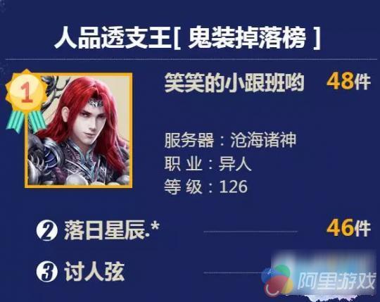 本期的鬼装掉落榜再次刷新,掉落48件鬼装,男异笑笑的小跟班哟~