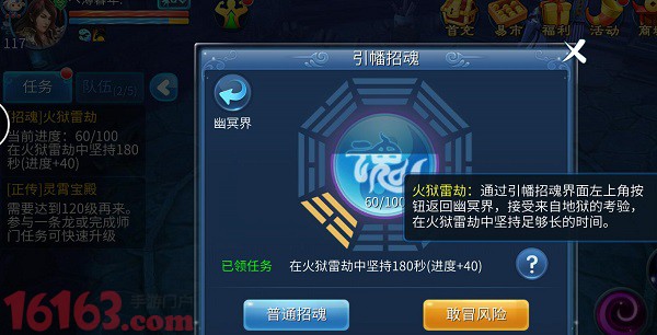 然后出现这个界面,分为普通招魂和敢冒风险。