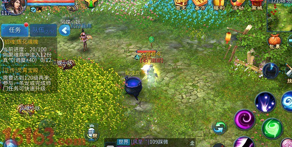 领到这个任务后会给你一个聚魂鼎技能,然后你可以在野外放下你的聚魂鼎(只能在野外),然后找一定数量的人来帮你注入真气。我找了12个。同一个人可以重复注入真气,不过有5分钟的冷却时间。自己不能注入真气,只能靠别人来帮忙,12个注入满后就可以完成任务了。