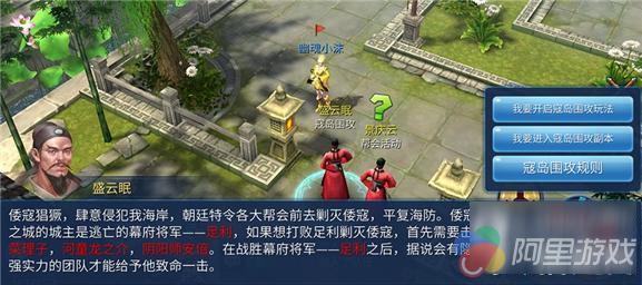 活动时间:周日12:00—22:00,帮会管理可开启寇岛,持续时间为2小时。活动地点:帮会城市内人员要求:玩家须为帮会成员,单人或组队均可,时限内可随意进出,单个副本上限30人。玩法流程: 要进行寇岛围攻战,首先需要帮会管理到NPC处开启寇岛,最多可开启五个副本。