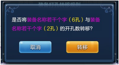7、二次确认后,成功转移后,原装备的孔清除,目标装备增加相同数量的孔。并获得消息: