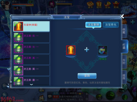 这个叫法宝重铸的东西,是洗基础属性的,需要用沧海玉(商城5灵玉1个)来洗。这个叫法宝炼化是用来洗额外属性的,需要用灵荒壁(商城1灵玉1个)来洗。