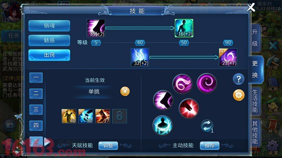 门派挑战、个人切磋、比武等技能设置,技能栏如下:
