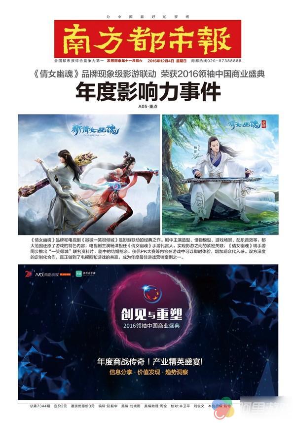 12月4日,《南方都市报》主办,有经济领域奥斯卡之称的“领袖中国商业盛典”圆满结束,网易游戏《倩女幽魂》品牌现象级影游联动荣获本年度“年度影响力事件”奖项。影游联动是泛娱乐时代进程中的新型营销模式,身处互联网江湖的谁都不能置身事外,明星、产品、作品联动模式都早进入了竞争白热化状态。在新生力量不断加入、行业格局不断深化背景下,《倩女幽魂》品牌与电视剧《微微一笑很倾城》的合作成为了一个被重点分析的标本。