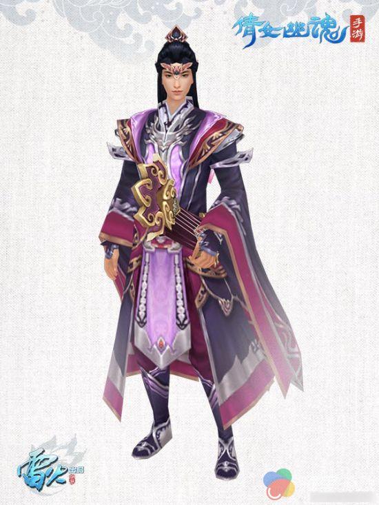 以黑色为主并辅之以白、蓝紫条纹图案的全新造型,滚银色的边,配上蓝色的灵狐面具和深紫色的琴,在黑色的沉静中酝酿着闪光的肃杀,更显得与众不同,妖冶却不轻佻,男魅者自成一派风流。