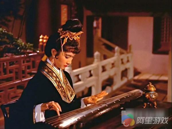 鉴于导演的古典审美,这版小倩的造型采用了古代仕女图加戏曲服饰的风格,一举一动皆透着典雅的东方传统审美——在华丽大气的亭台楼阁间,荷塘水榭上,着黑色衫裙的小倩在轻抚琴弦,吟诗和对,金色的衣缘更添华贵,丝毫不觉鬼气。