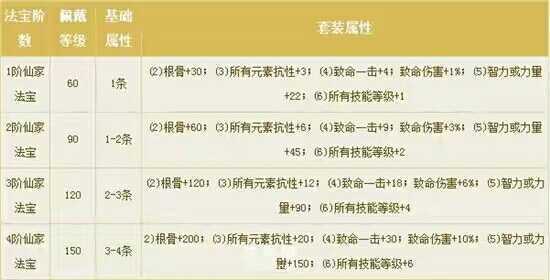 法宝有三个大的类别属性,分别为基础属性,额外属性,套装属性