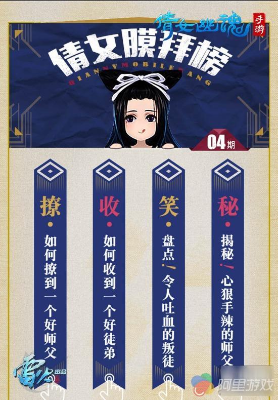 《倩女幽魂》手游师徒系统上线后,新老玩家反响强烈,纷纷在倩女三界中找到了称心如意的师父或徒弟。当玩家们在倩女三界师徒情义正浓的时候,《倩女膜拜榜》第四期也震撼面世,在本次榜单中,不仅有九大趣味榜单盘点三界传说,更有神秘内容,为你揭秘师徒之间的那些事儿。