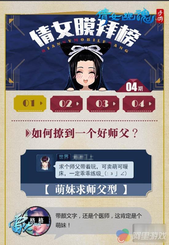 玩家在使用师徒系统的过程中,会遇到很多问题:该使用怎样的技巧,才能找到称心如意的好师父?想收徒弟的师父,又该怎么判断收到的徒弟有潜力?刚刚收到的徒弟,为什么转眼之间就离师父而去?本次倩女膜拜榜将为你一一揭晓。
