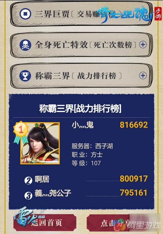 那么,在本期榜单中,还有哪些人光荣上榜呢,少侠们快去看一看吧!