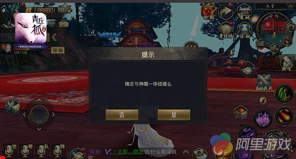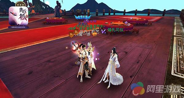 携手进入礼堂后找到婚礼司仪,对,就是那个穿白裙子的美女,选择婚礼的类型【普通豪华】(当然也可以离婚或是强制离婚哦),我结的是豪华婚礼,以下内容就以豪华婚礼为例了~选择完婚礼类型系统会弹出一条提示,询问【是否确定与XX结婚】,这就犹如结婚时的誓言“XX,无论生老病死你都会...你愿意吗?”。Of course,I do,瞬间结婚的消息便会传遍青丘每一个角落,所有玩家都可以抢红包来分享你的喜悦,同时还可以邀请好友一起来现场观礼哦~