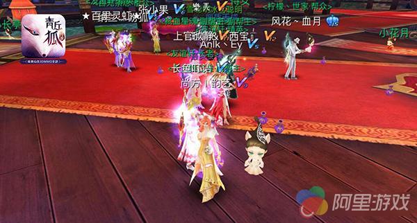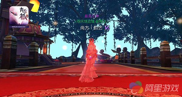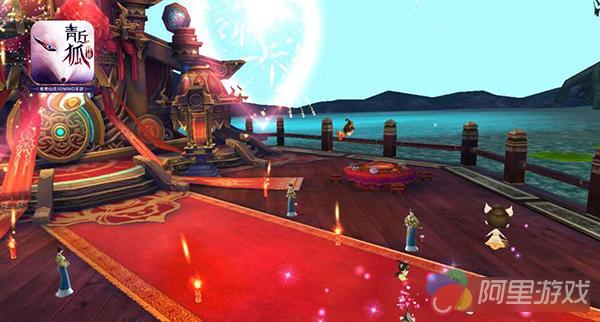 不得不说,《青丘狐传说》手游的画面还是很走心的,进入礼堂,一副古色古香的画卷展现在眼帘,满天的烟花、喜庆的红绸、丰盛的美食、华丽的前厅、幽静的走廊、温顺的侍女,让人如临其境,切身实际感受周围热情洋溢的气氛。