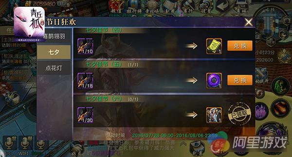 号称青丘史上最难的小游戏之一的点花灯又来啦!无关乎战力、等级、装备,只拼眼力、手速还有网速~这个大家都不陌生了我就不多说了,各位玩家们加油吧~70个花灯可以兑换6级宝石礼包,50片花灯碎片可以换取暗刺系列时装哦~