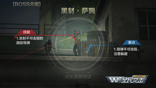 黑豹萨姆论生存能力甚至不如武器大师,毕竟没有无敌技能,但是黑豹萨姆会在楼顶跑来跑去想一次性击杀基本不可能。首先我们需要注意跟踪导弹,我们可以很清楚的看清射线和导弹的速度,我们只要躲到其他掩体就可以避免伤害,其次我们击杀黑豹萨姆推荐使用K2铁血战龙,基本一次枪械技能就能打掉其一半的血量,配上点射几枪就可以轻松击杀。