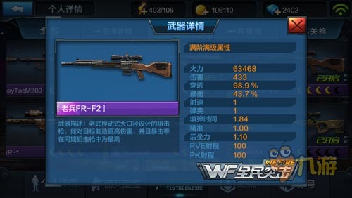 老兵FR-F2也拥有相当不俗的伤害和暴击属性,而且相比起刺羚F2X来说老兵FR-F2的价格相对也要便宜很多,平民玩家也是可以培养的起的。