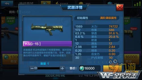 KSG-15是这三把枪械兑换价格最高的,当然按照钻石售价KSG-15也是最贵的,但是对于平民玩家来说不推荐兑换KSG-15。虽然KSG-15的伤害高,弹夹也足够大,但是我们PVP能用KSG-15么?当然不能。如果是PVE使用的话射速只有1绝对拖后腿,所以不推荐大家花16000挑战币兑换一把性价比极低的枪械。