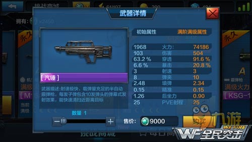 气锤的伤害没有KSG-15高,但是射速绝对是气锤最大的亮点,在AA-12没有出来之前佣兵最好用的霰弹枪就是气锤,射速高伤害自然高。当然相对于AA-12的售价气锤则要经济划算许多。限时的这60天足够兑换4把气锤,再花400钻石购买一把直接可以升到60级,绝对是最省钱的霰弹枪。
