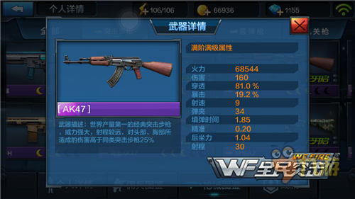 AK47的属性自然不用再多做介绍,相信每个热衷于阵地射击的老玩家都有一把满火的AK47,AK47在PVP 突击步枪的伤害也仅次于黄金AK47,所以使用AK47的玩机还是很多的。