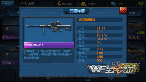 巴雷特M82A1的最大优势就是相对于刺羚不需要频繁更换弹夹,可以连续对敌人造成伤害,虽然单发伤害没有刺羚那么高但是机动性和实用性则更加优秀。