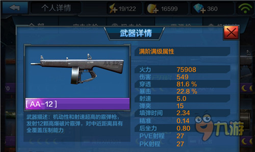 AA12在射速和载弹方面有着很大的优势,威力很大,PVE战斗近战过程中,能对敌人造成成吨的伤害,但是不得不说,近距离战斗的危险性还是很大的。