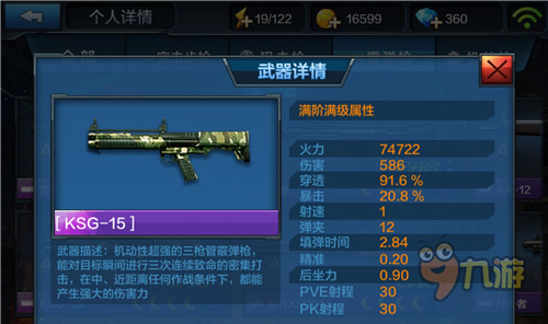 KSG-15:机动性超强的三枪管霰弹枪,能对目标瞬间进行三次连续致命的密集打击,在中近距离任何作战条件下,都能产生强大的伤害。