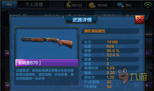 雷明登870:局以偶较高弹头秘籍分布的经典款泵动霰弹枪,造型流畅,并且伤害、暴击率能确保一击必杀。