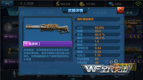 亡命游侠的最大亮点在于它的伤害,1511伤害为所有枪械之最,比巴雷特M95和赤炎朱雀还要高出一倍。这把枪械属于未来而不是现在,就冲这点就配称为最逆天枪械,但是亡命游侠的亮点远远不止这一点。
