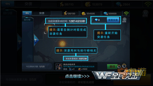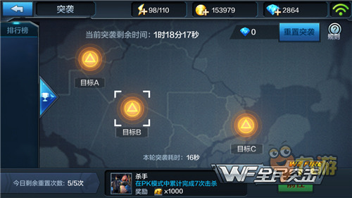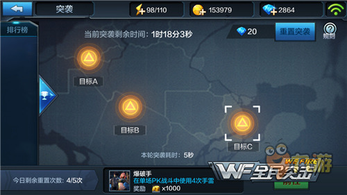2、 突袭任务可以重置,第一次免费后面每次20钻石递增,上限为五次。