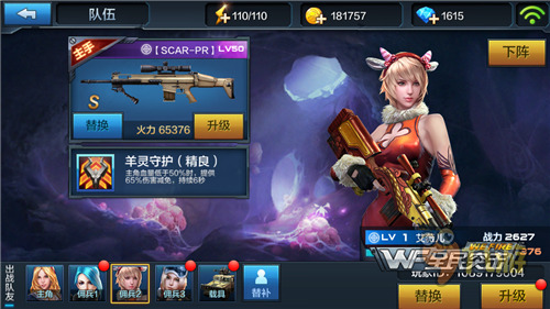 这个阵容二号位相当于突击兵,虽然狙击兵使用SCAR-PR没有突击兵攻击频率高,不过综合伤害相差无几,并且相对于突击兵的攻击性技能,艾薇儿这种减伤技能收益更大。狙击兵爆头率比突击兵更高配合上SCAR-PR的爆头伤害加成真是谁用谁知道。