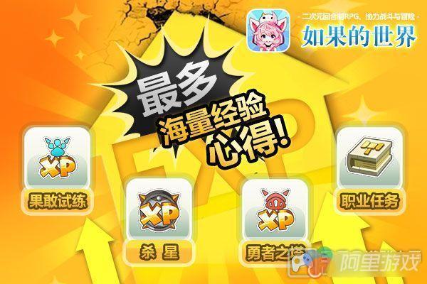 获得了钻石和金币,小伙伴们就可以开始给自己的英雄增加经验啦!喵酱先来爆料一下能够获得经验的性价比最高的一个玩法——果敢试炼吧,作为水晶试炼中的终极挑战,只有达到50级的玩家才可以进行挑战哦!除此之外,野外野外boss、勇者之塔和职业任务也可以在短时间内获得大量的经验哦!