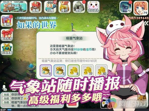 很多小伙伴都梦想过天上能够掉金条,那么喵酱告诉你们,在《如果的世界》中完全可以实现这个梦想!喵酱气象站是《如果的世界》中新增加的日程,在这项活动中,各种福利会从天而降,小伙伴们可以痛快地体验一下什么叫做“不劳而获”啦!