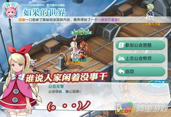 公会主管闲着没事,就喜欢出题考(tiao)察(xi)冒险家们~~只要进入公会领地参加答题即可获得公会物资以及经验奖励。米娜桑不要害怕,题目也是超逗比~像“1+1=?”这种送分题我会乱说?