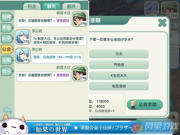 米娜桑答题即可获得奖励与积分,活动结算后,根据正确率给予额外奖励。SO,为了更高的奖励,勇敢的求助公会小伙伴们吧~~\(≧▽≦)/