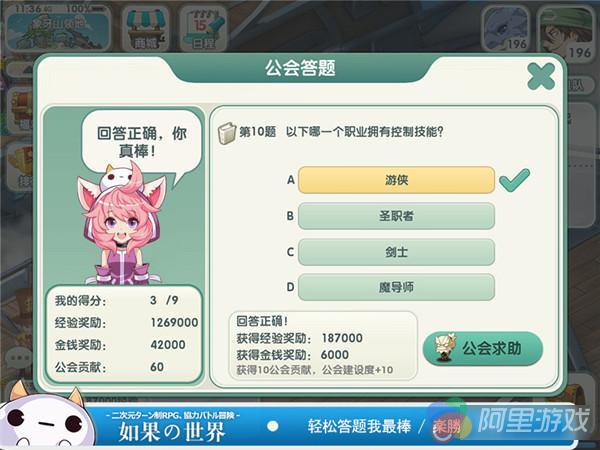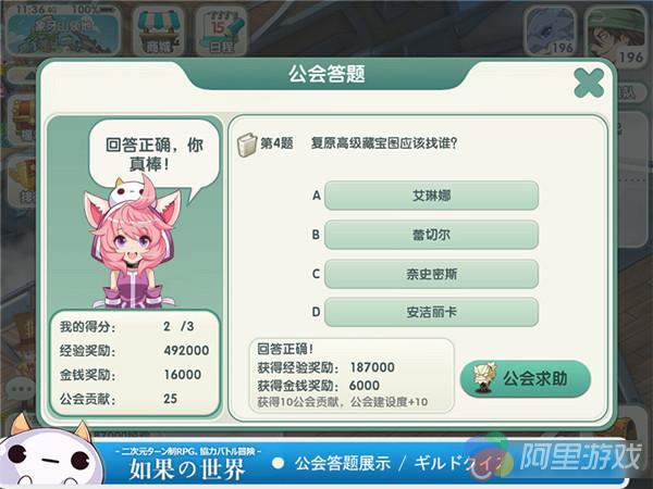 在如果的世界中,答题玩法纳入到公会系统中。米娜桑只要在公会据点中找到“俱乐部理事”,就可以接取答题任务啦~ヾ(o◕∀◕)ノヾ
