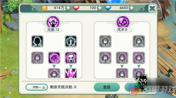 魔法师的天赋分为元素和咒术。顾名思义,其中元素的天赋可以增益攻击型法术,咒术可以增益减益法术的效果。