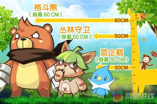 那么我们来对比一下幼年宠物宝宝们的身高:最小巧的是小巧精灵的蓝**,最高的则是最具爆发力的拳击熊。
