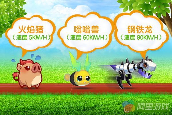 在回合游戏中,速度快则意味着每一回合的先后手,先手往往意味着先发制人,逆转战局。从宠物速度上来看,憨态可掬的火焰猪速度较慢,而迅捷的钢铁龙则拔得头筹,堪称宠物界快银!