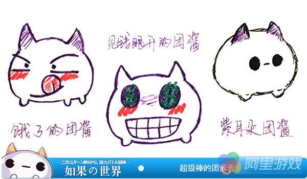 看过游友们画的三幅萌萌哒的团酱之后,喵酱发现真是一百个人心中有一百只团酱。当然,“如果团队”也为小伙伴们献上了一组团酱表情包,各种团酱尽在其中,欢迎小伙伴们自行取用,总有一款适合你,详情请见下面的原画设定哦!