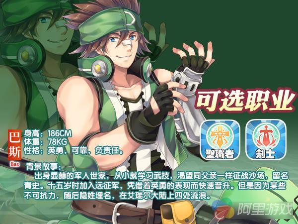 肌肉大叔巴斯是号称艾瑞尔大陆上最可靠的人,可能这与他的身世有关,巴斯大叔出生在一个显赫的军人世家,他从小就努力习武,渴望像家族的前辈一样留名青史,可惜的是,由于一些不可抗力,巴斯大叔流落到了艾瑞尔大陆,隐姓埋名,无法实现自己的抱负。喵酱可是真心喜爱巴斯大叔爽朗大气的性格呢!当然,这么英勇又温暖的治愈型大叔,他的职业发展可是米娜桑一直都很喜爱的圣职者和剑士哦!