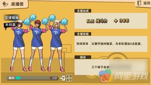 当然,应援团中除了嘻哈天团、西部男孩这种独树一帜的特色团队外,由萌妹子组成的篮球姐妹应援团绝对是赛场上最亮眼的部分。每个应援团的应援技均不相同,有些应援团可以在球员进入危机时刻时回复20%HP,有些在比赛开始时让球员获得伤害提升效果,玩家可以根据组队球员需求有策略性的搭配不同的应援团。
