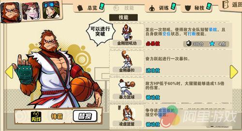 如果玩家只是单纯认为助攻位置的球员更擅长突破,得分位置的球员全都由全能型选手胜任,那就大错特错了。每个位置的球员所擅长的技能并不局限于球员位置。如内线锋霸大猩猩,虽然属于黄金三人组中内线位置,但是他的必杀技“金刚怒吼功”可以把敌方震晕,从而抢夺发球权,在敌方HP低于60%时,大猩猩能够造成1.5倍的伤害。